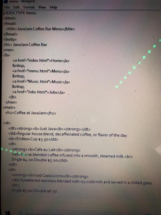 Solved 221811 Javajam Coffee Bar Home Menu Music Jobs Chegg Com
